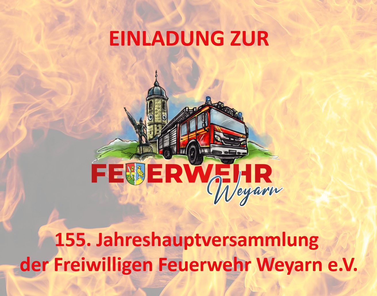 Wir laden unserer Mitglieder, Freunde und Förderer zur 155. Jahreshauptversammlung des Freiwilligen Feuerwehr Weyarn e.V. ein. Diese findet am 20. Februar um 19 Uhr in der Bruckmühle in Mühlthal statt. Neben den Berichten des Vorsitzenden Fritz Würzhuber und des Kommandaten Ralph Benda stehen in diesem Jahr auch Neuwahlen der Vorstandschaft auf dem Programm.